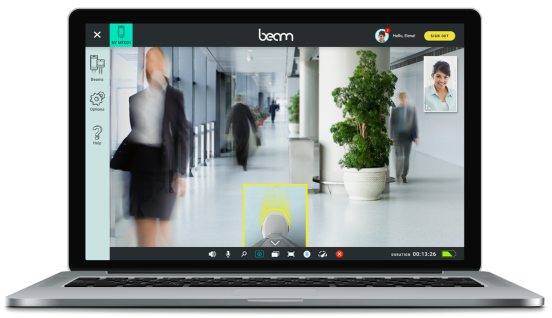 Beam allows you to feel like you’re in there in the room no matter where you actually are in the world. It provides authentic eye-to-eye connection instantly across distance, allowing you to seamlessly move within the space and engage with people there in real time. It’s more than a video conference tool, it’s a mobile robot that you can operate to move within the space.