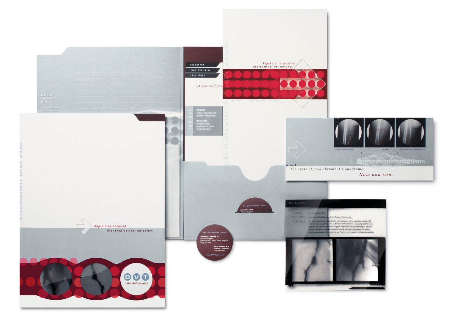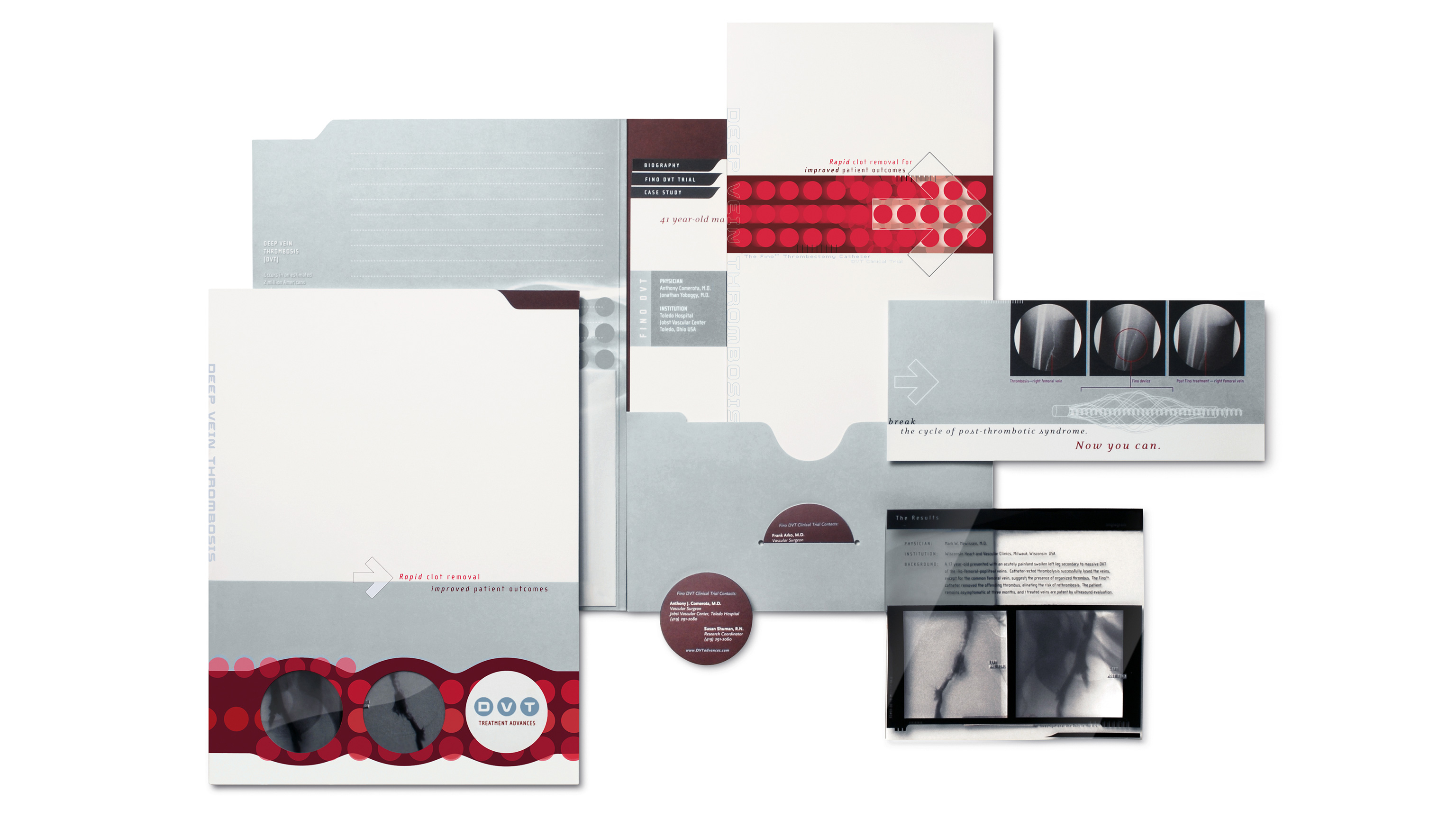 After successful testing in South America, Bacchus Vascular began the U.S. clinical trials for their Deep Vein Thrombosis (DVT) treatment. With 12 hospitals signed up for the trial, they required a comprehensive yet flexible information package to educate physicians and patients about their product. The flexible system of materials addressed uses across all hospitals as well as customized parts for each trial site. The 3-month goal to sign up 40 patients was already reached halfway within the first two weeks.