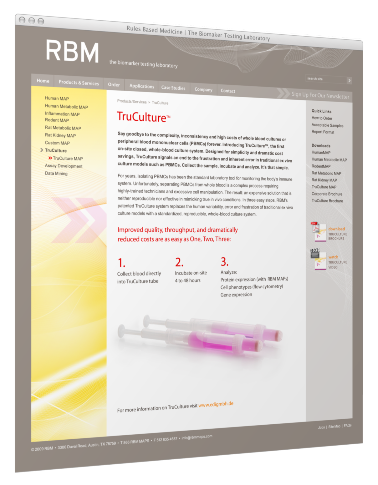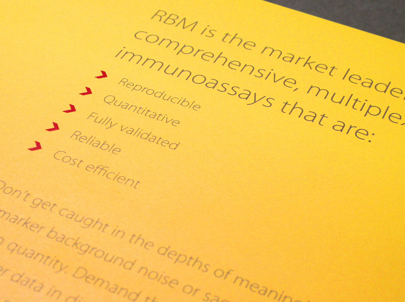 RBM is a biomarker-testing lab providing reliable and consistent blood testing services for hospitals and pharmaceutical companies. This is a huge advantage for smaller hospitals as they don’t need to maintain their own expensive testing facilities and trained personnel, but they can still provide patients with test results only found by identifying biomarkers in their blood. RBM engaged us to create a design system that would help better market their offerings.