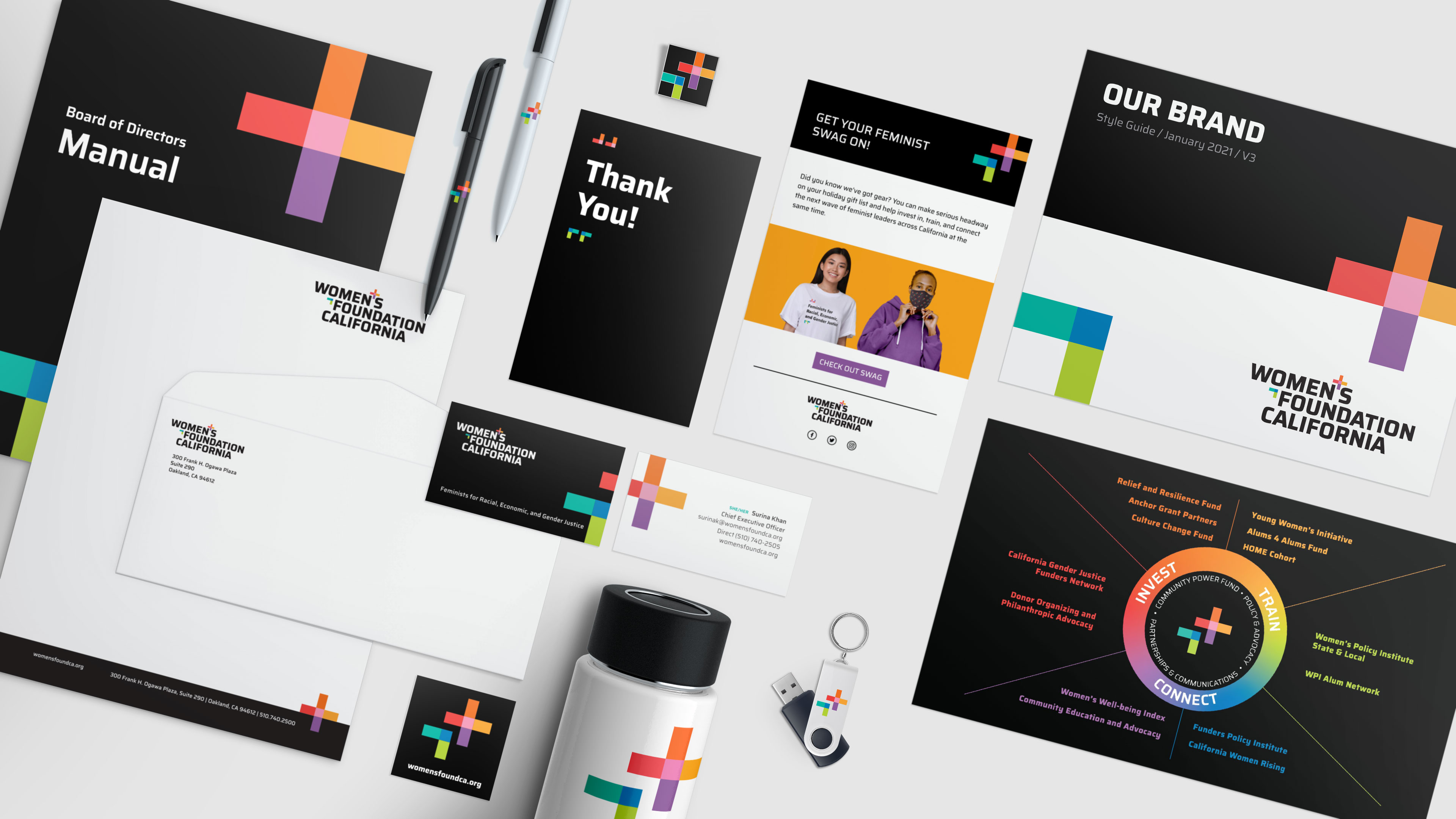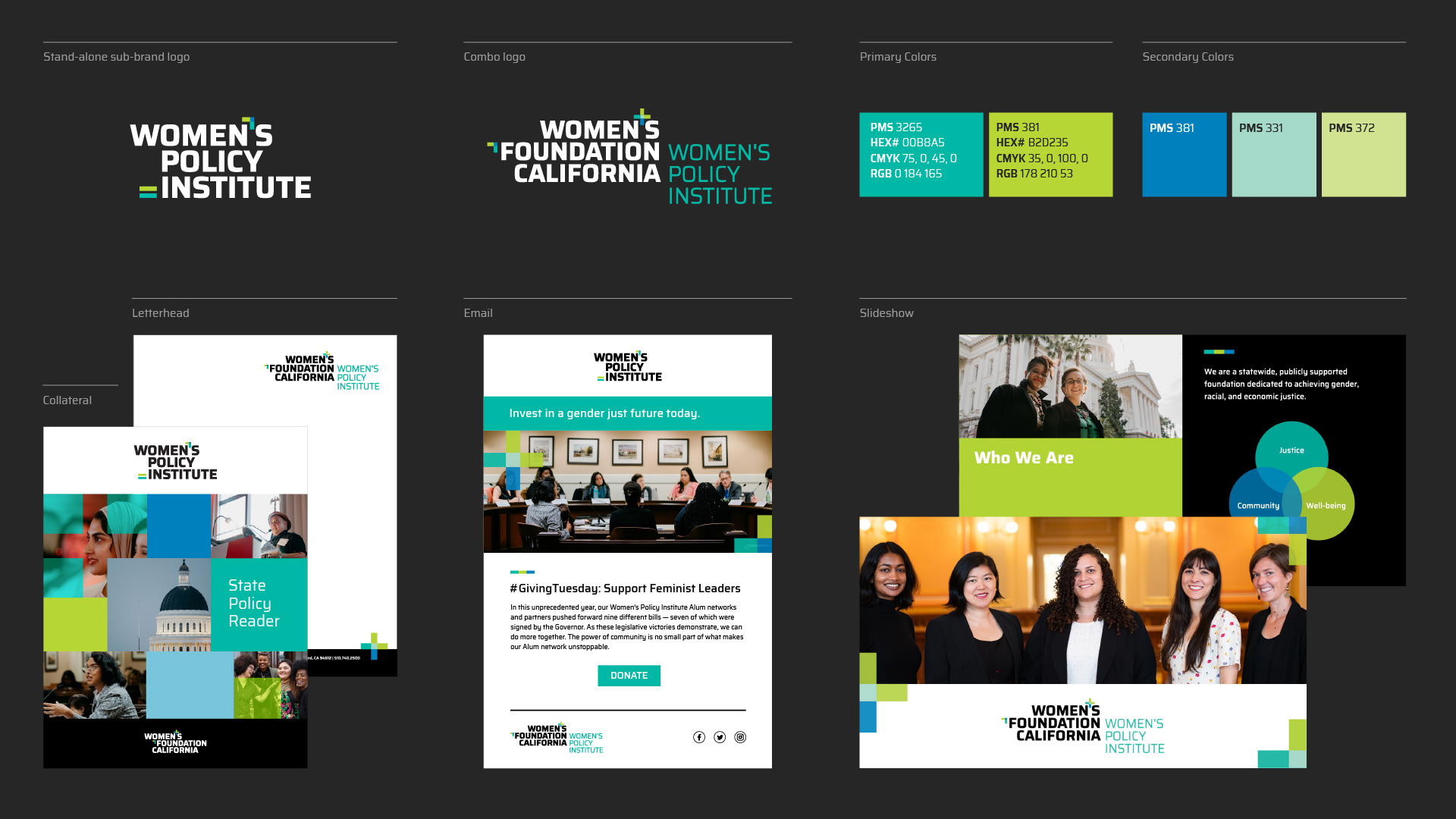 The Women’s Foundation California has always stood for inclusion, justice, and progressive legislative change on behalf of all self-identified women, trans, and gender non-conforming people everywhere. For their brand refresh, we modernized their font, deconstructed the gender symbols, and added the rainbow of color to better reflect today’s inclusive and intersectional community. We designed this update to showcase their joyful activism and create a big umbrella to visually include, welcome, and celebrate people who believe in the cause.