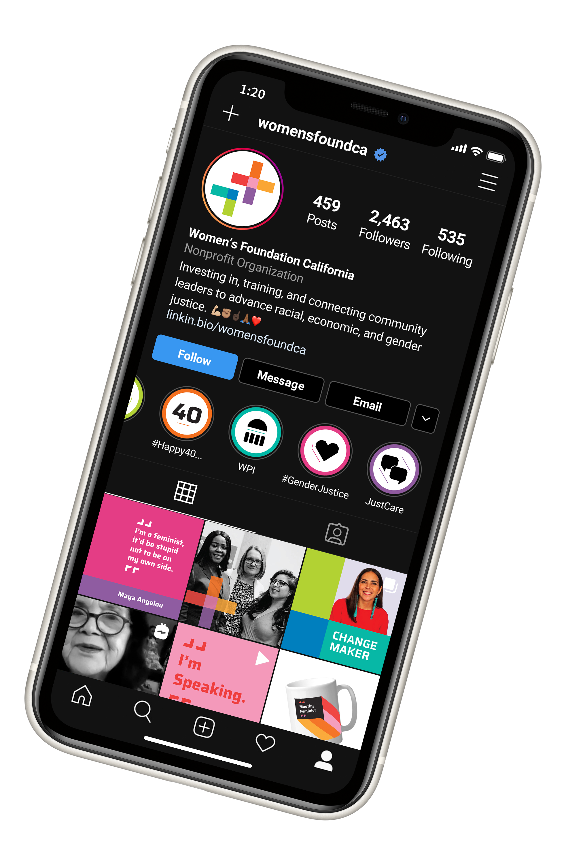 For Instagram, we not only created branded templates for use on individual posts, we designed it as an entire system so that even the summary view looks cohesive as a whole. From posts to story icons to the brand new logo, on black and on white, the WFC Instagram represents their look through and through.