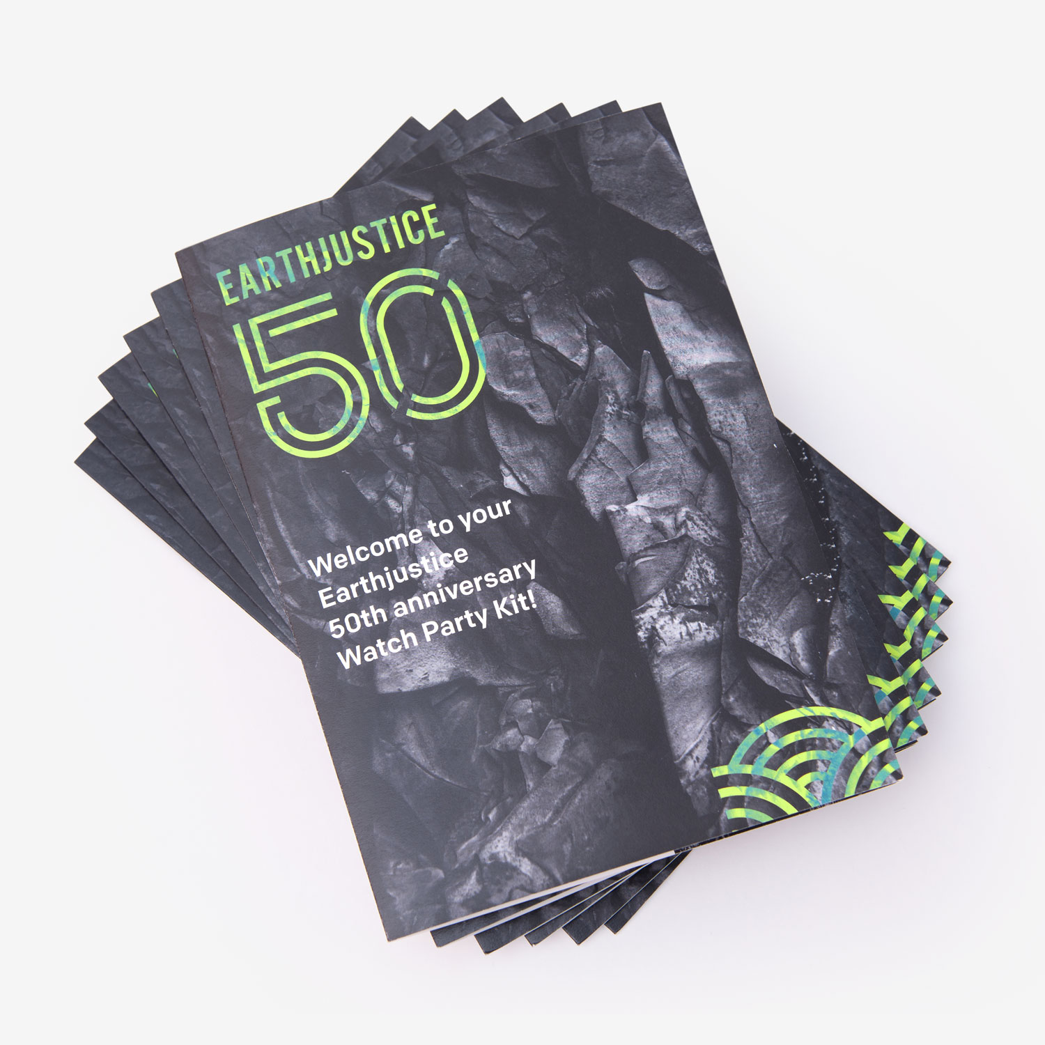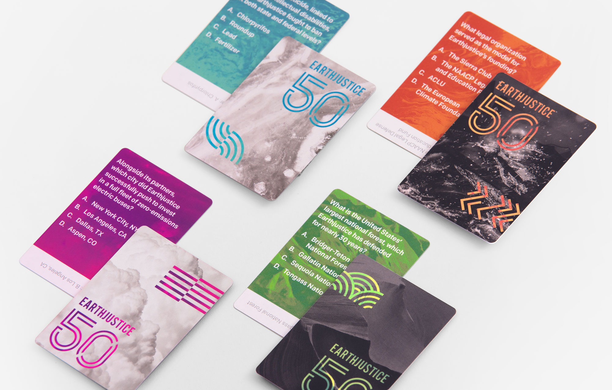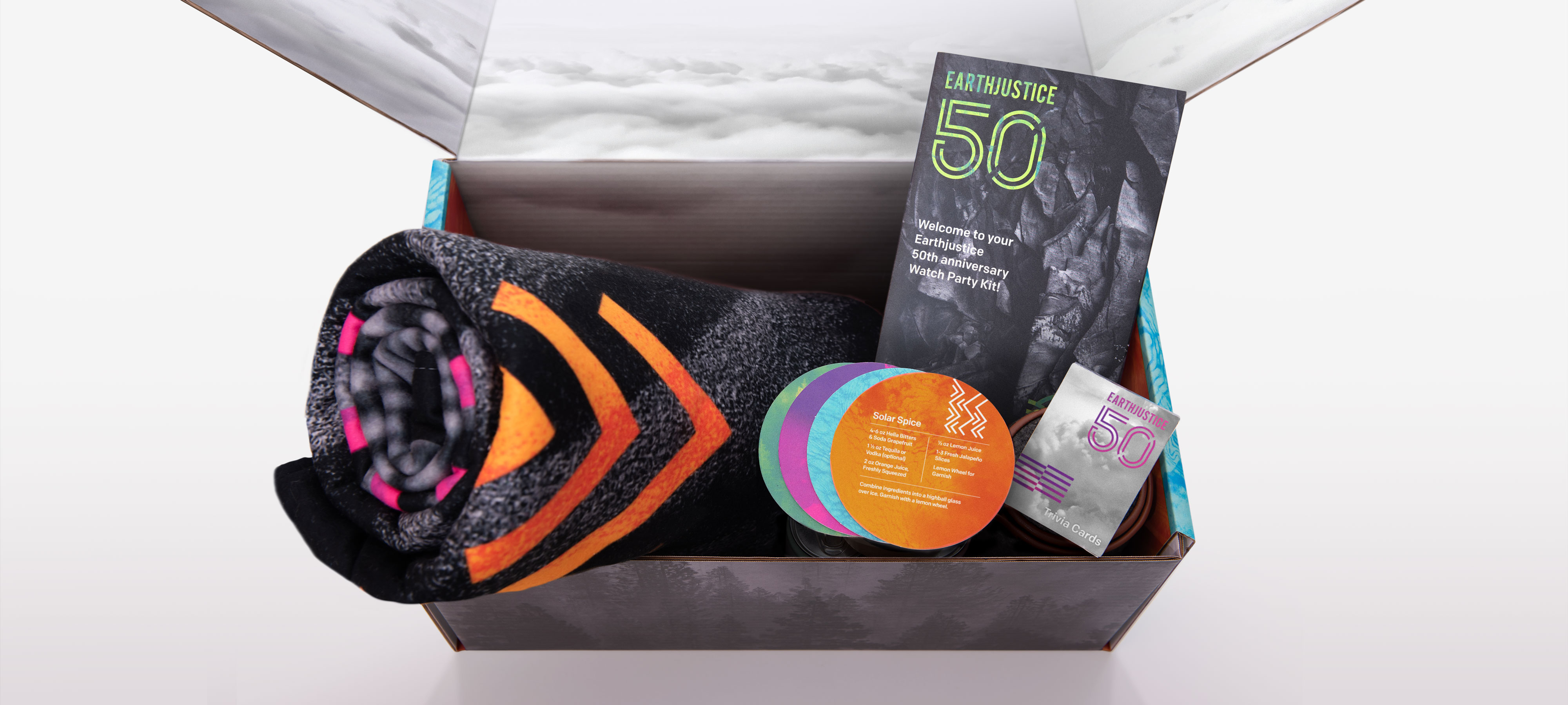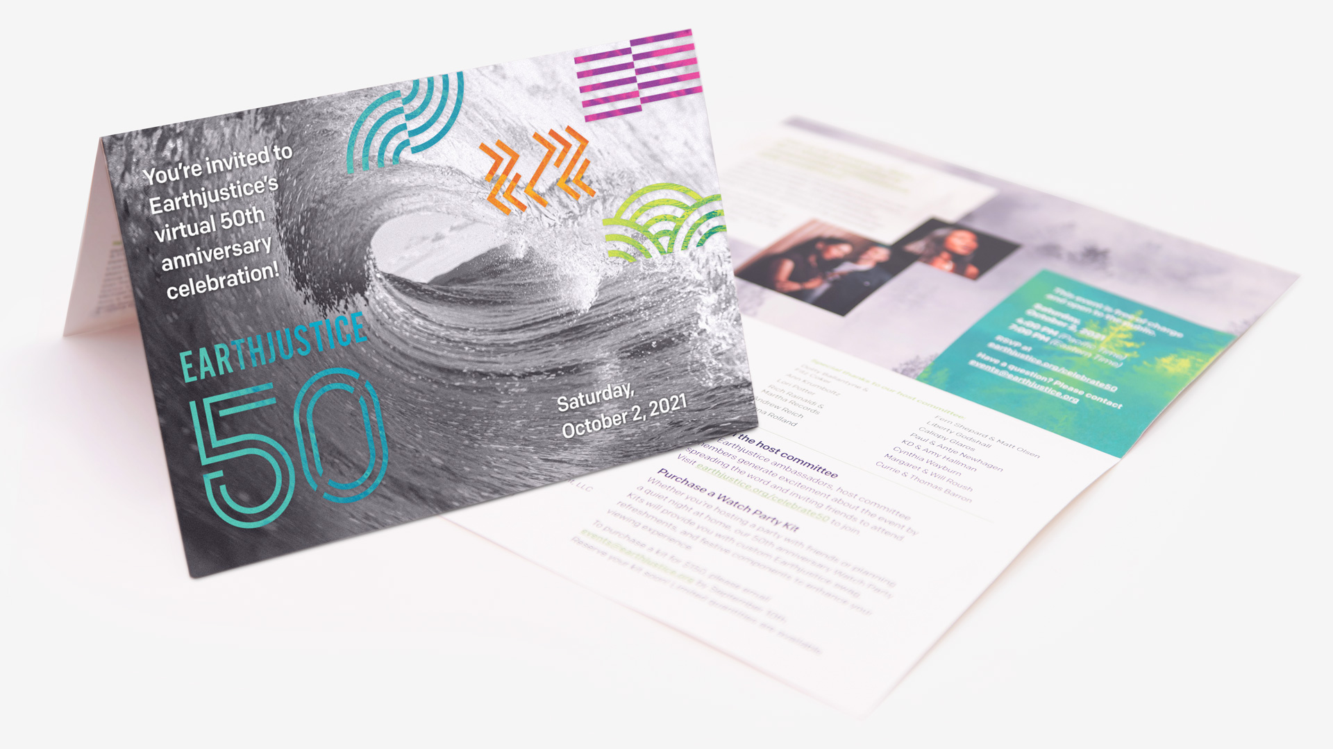 Earthjustice held a hybrid event, commemorating their five decades of fighting for the future of the planet. Hosting the anniversary online allowed guests from around the world to join the celebration. House parties around the country allowed for small gatherings to enjoy the event safely together. To brand this milestone, we returned to the building blocks of nature, using the four elements as an overarching theme.