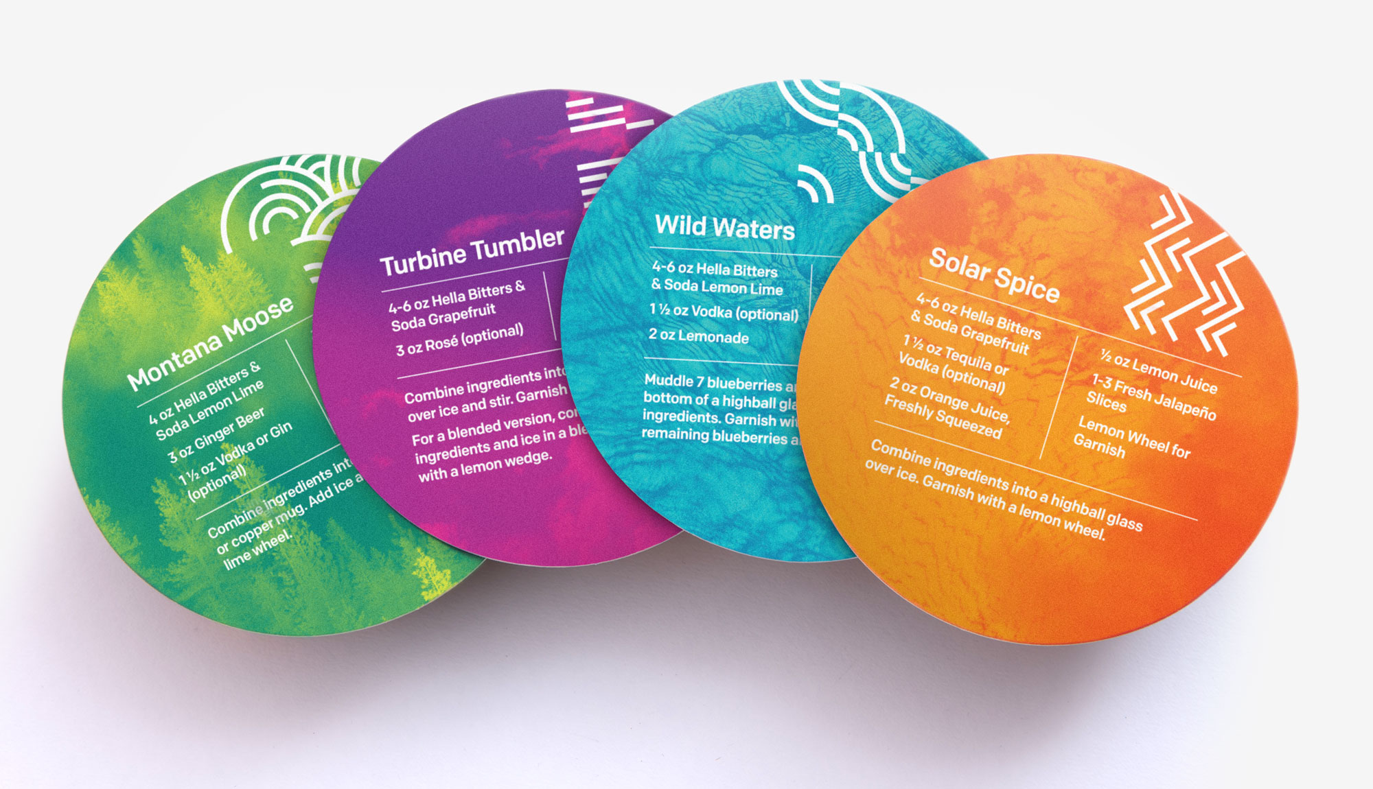 Earth, air, fire, and water—each element got its own icon and distinct color, creating contrast against the black and white photography and building a flexible design system for the event.