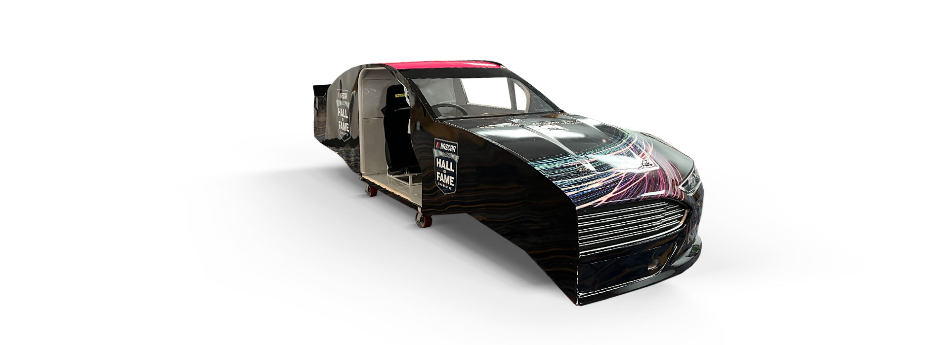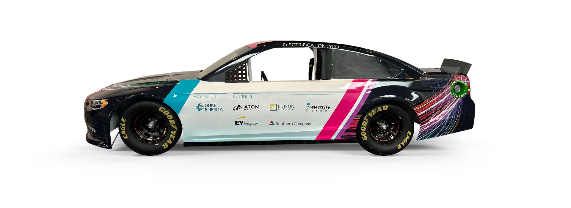 One of our favorite elements of the NASCAR party location was the photo booth—an actual half of a NASCAR that we wrapped in our Electrification branding.