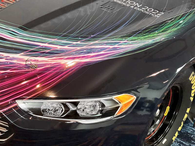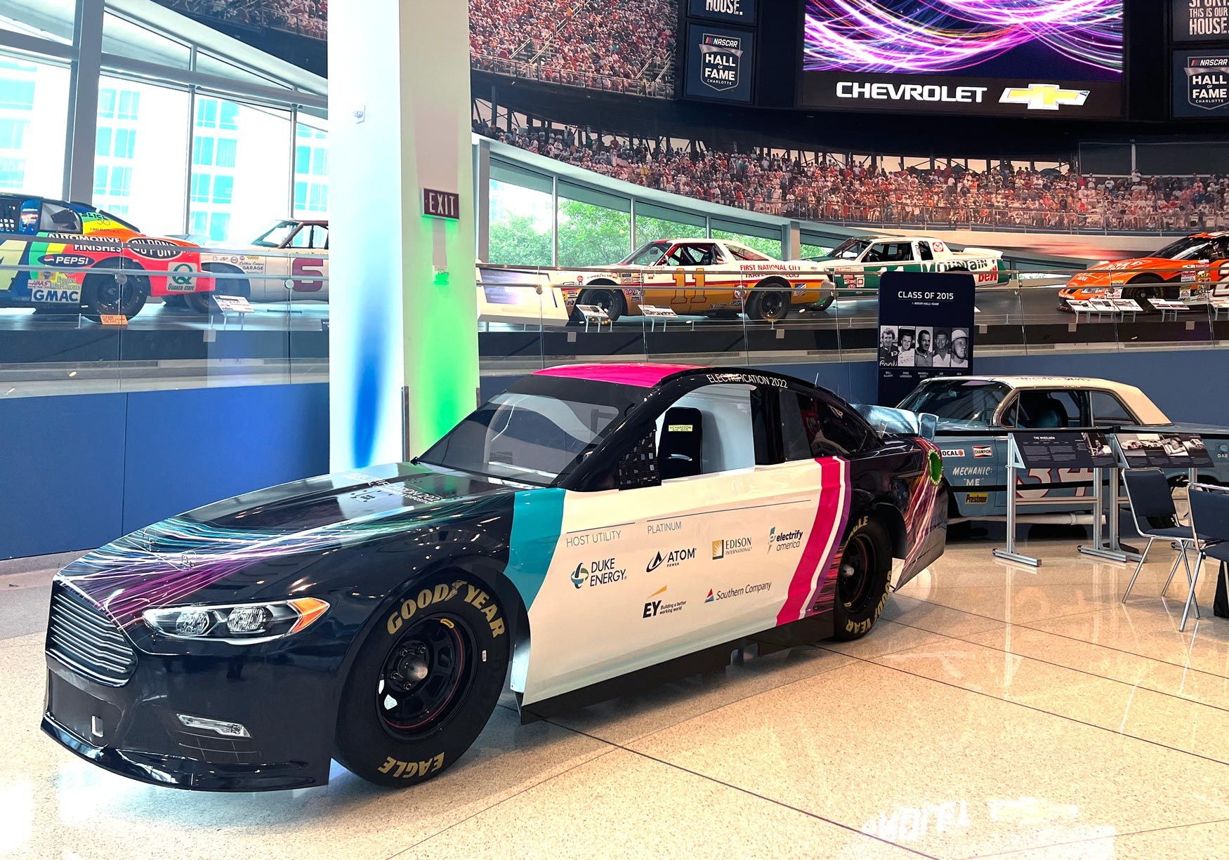One highlight of the expo was the welcome party at the NASCAR Hall of Fame across the street from the Convention Center. We used branding opportunities throughout the venue to tie it to Electrification 2022. The hall was full of fun driving related games, from a timed tire change to a video game car race simulated inside of an actual race car. People had so much fun, the party lasted well past the scheduled closing time.