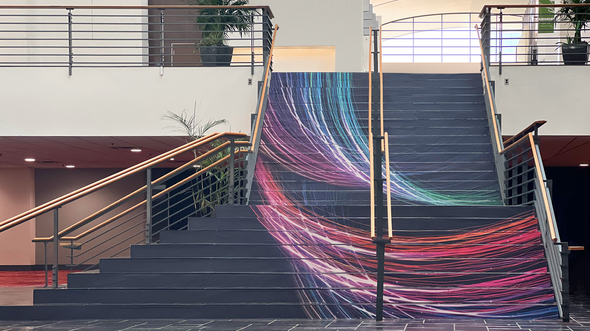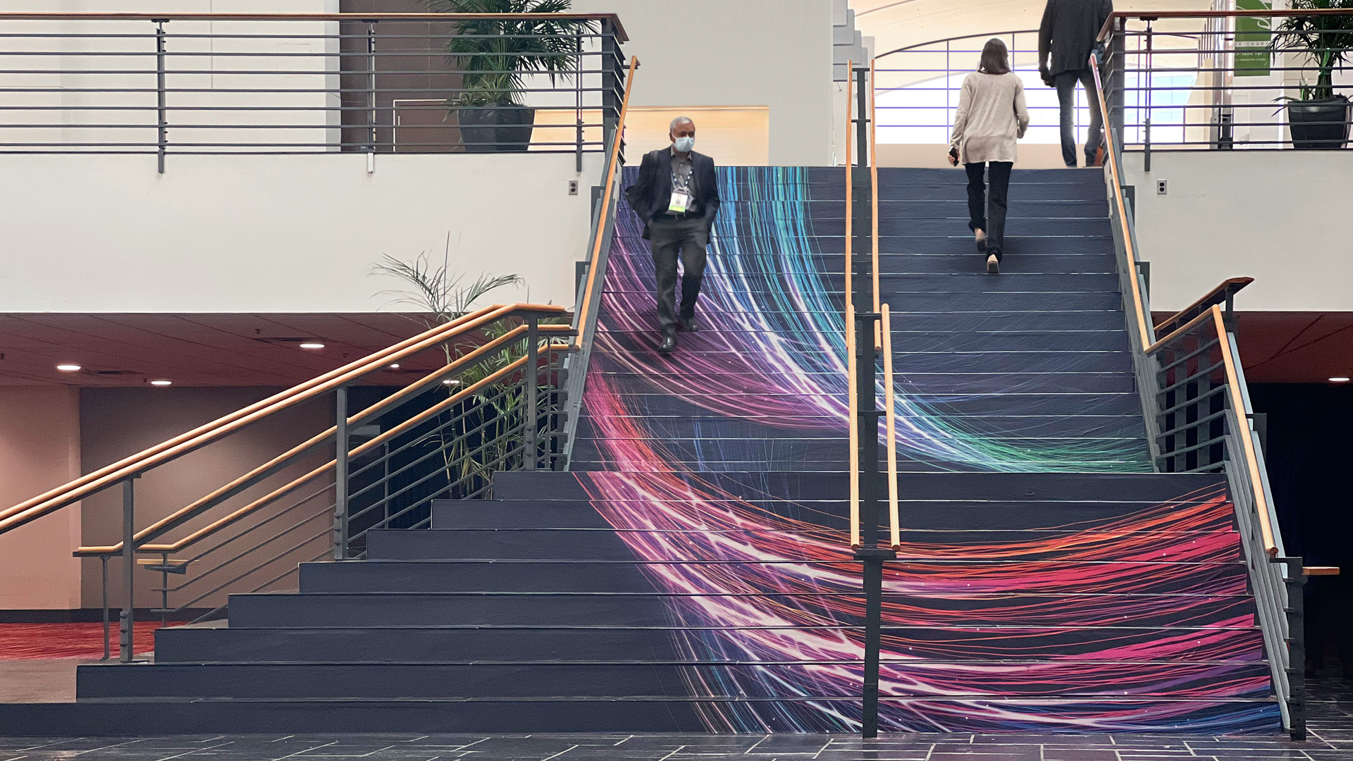 An animated loop of the event branding as well as backdrops for speaker presentations was created for the 48-foot wide display in the plenary session hall.