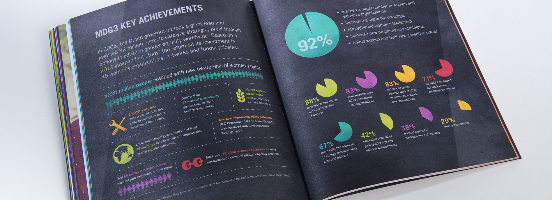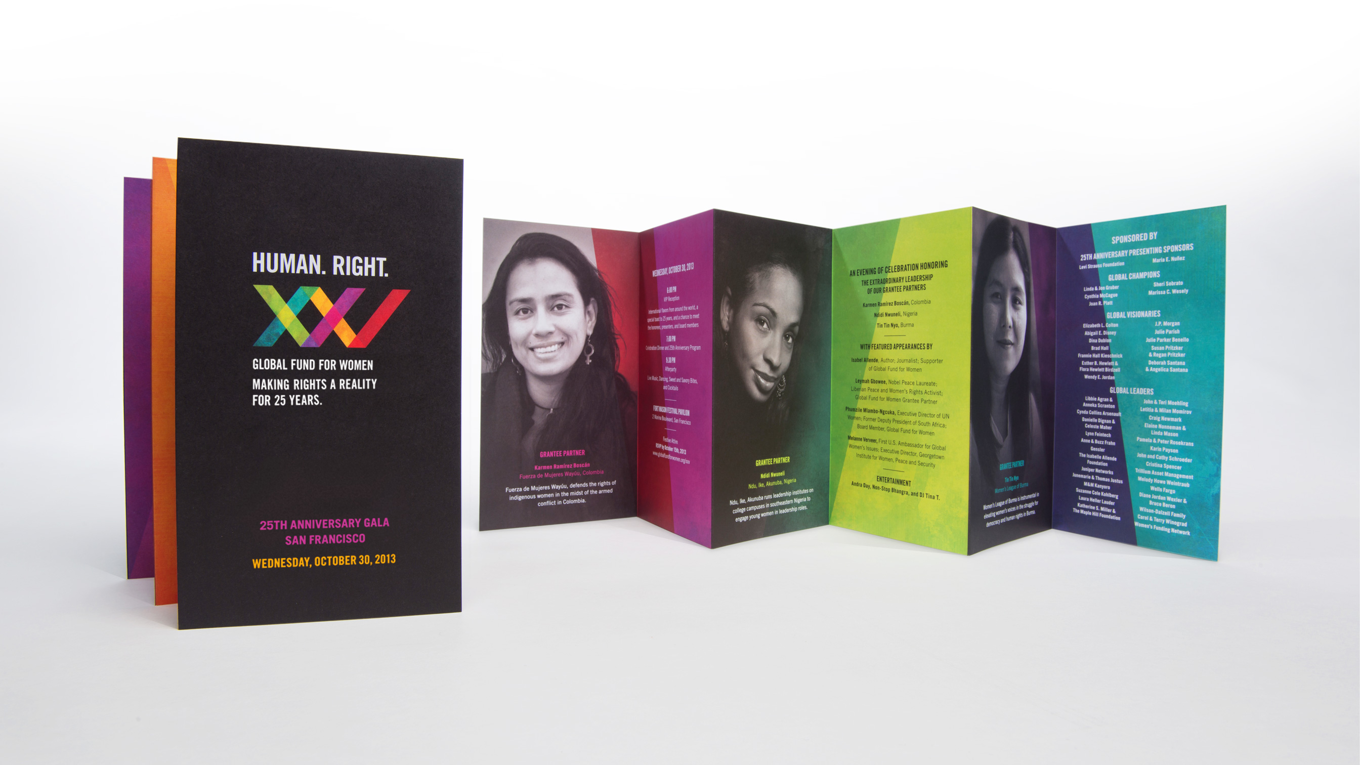 For the two 25-year anniversary galas, we designed invitation packages, anniversary stationary, and a colorful 100+ page book to commemorate the milestone. With five chapters featuring five different articles each, we focused on a wide variety of stories to cover the breadth and depth of the success of the Fund over their long tenure, ending on a future looking chapter.